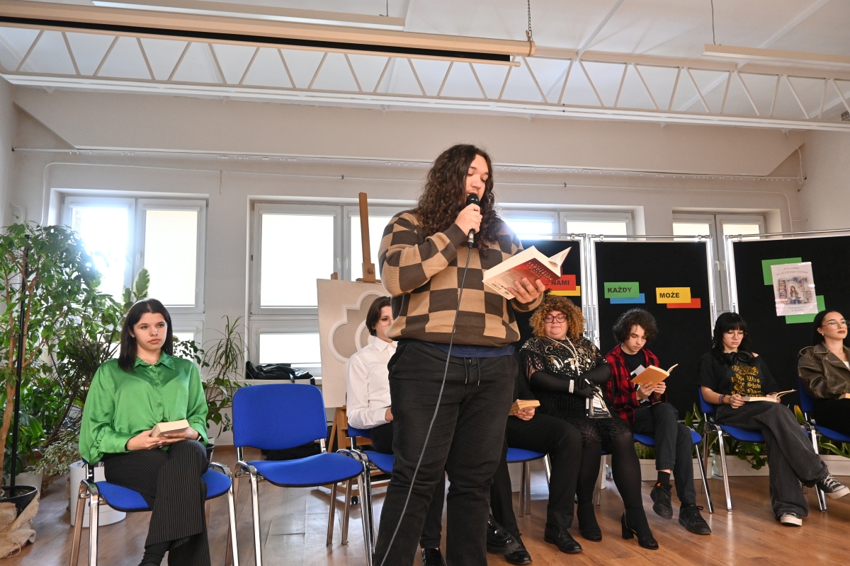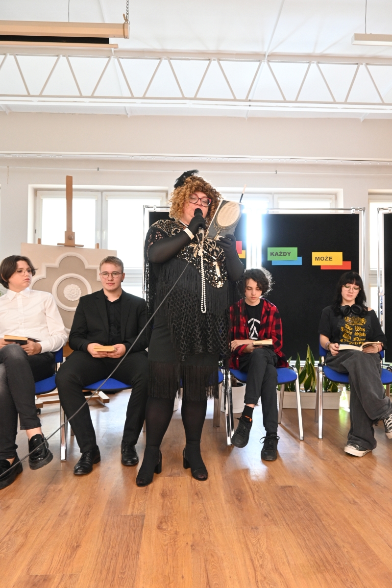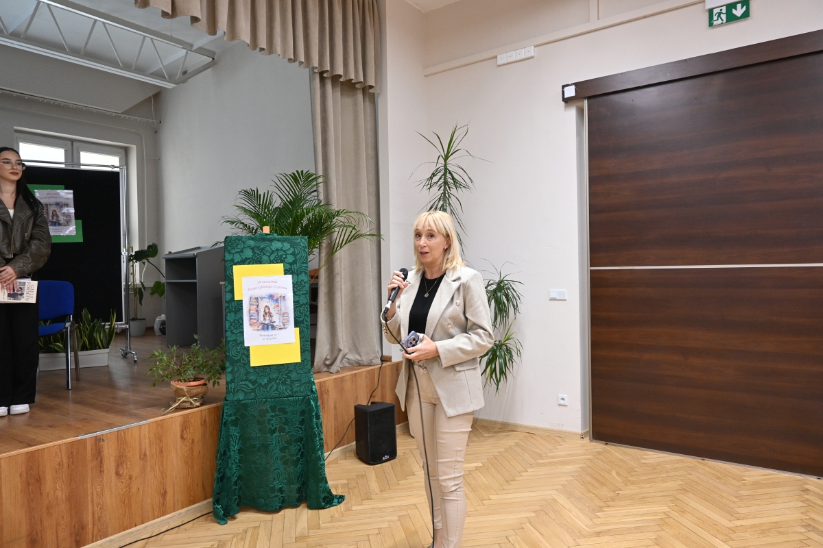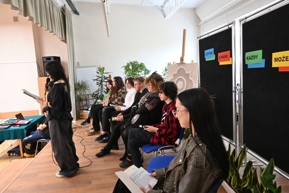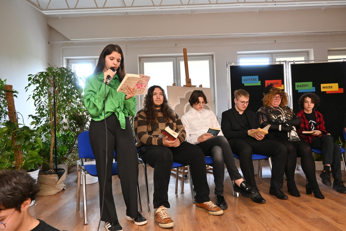 W dniu 29 września, czyli Dniu Głośnego Czytania, przez Bibliotekę szkolną zorganizowana została w szkole uroczystość promującą czytelnictwo, pod hasłem „Czytać z nami każdy może”. W tym dniu bowiem w bibliotekach oraz instytucjach kultury organizowane są wszelakie akcje czytelnicze, konkursy czy imprezy promujące książkę. Formę uroczystości stworzyli sami uczniowie, którzy mieli możliwość zaprezentowania swojej ulubionej książki, oraz przeczytania jej fragmentu. Prócz młodzieży, dając dobry przykład do naśladowanie, w wydarzeniu wzięła udział pani Ewa Drak, nasza pracownica, artystyczna dusza, która bardzo chętnie włącza się w działania szkolne.