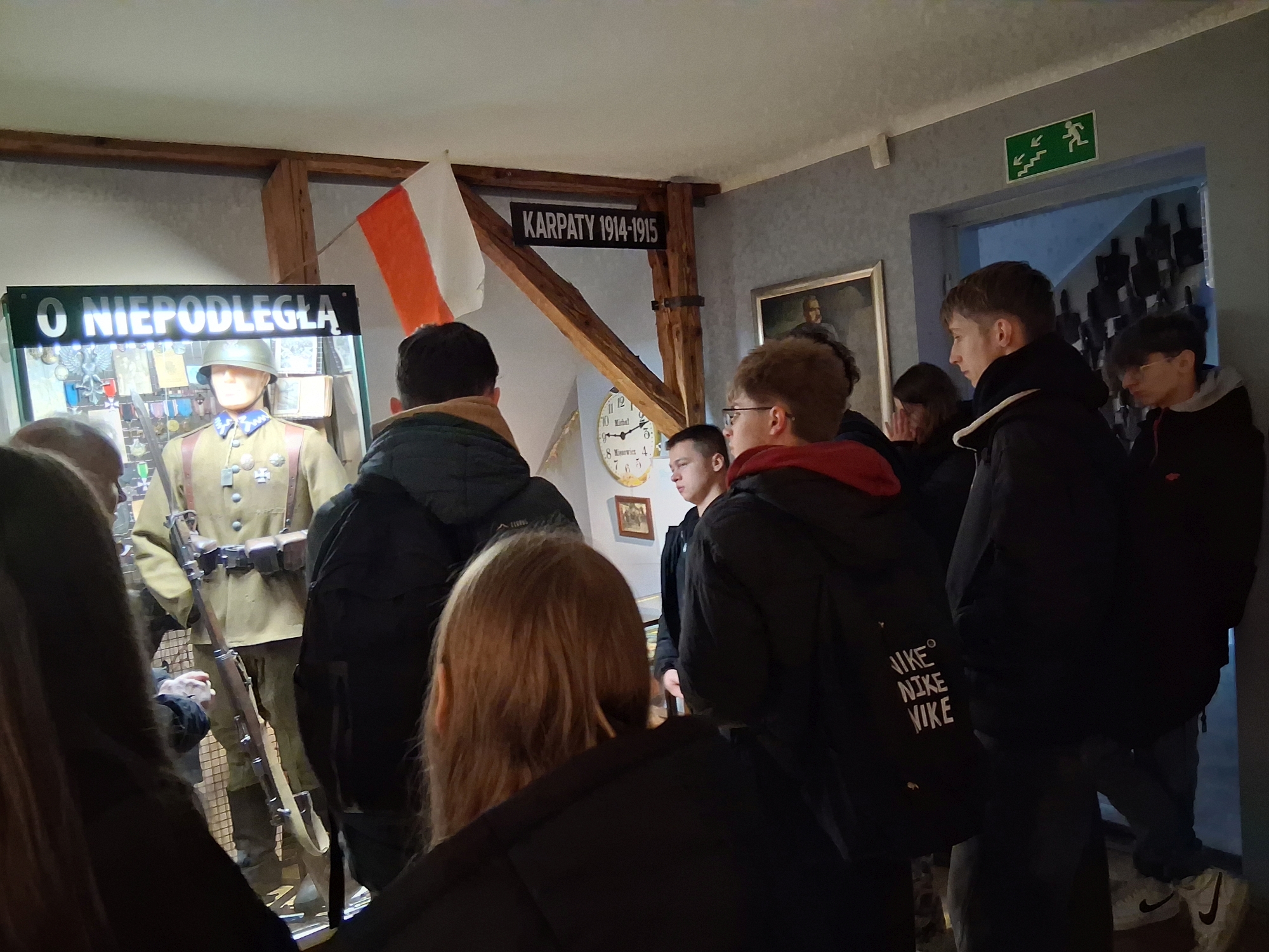 W dniu 4 grudnia 2025 r. uczniowie klasy IV TGiPC odwiedzili Prywatne Muzeum Podkarpackich Pól Bitewnych w Krośnie. Wizyta ta odbyła się w ramach realizacji Projektu czytelniczego pn. Miejsca pamięci i pamiątki walk pierwszowojennych w naszym regionie. Podczas zwiedzania muzeum uczniowie mieli możliwość poszerzenia swojej wiedzy historycznej dotyczącej I wojny światowej ze szczególnym uwzględnieniem obszaru Karpat.