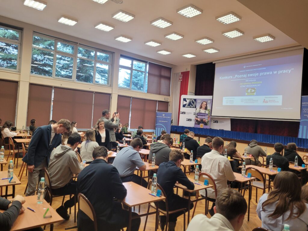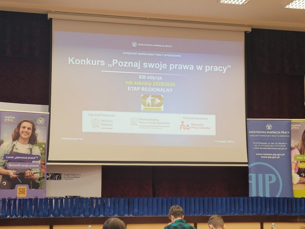 Regionalny etap konkursu „Poznaj swoje prawa w pracy” zorganizowany przez Okręgowy Inspektorat Pracy w Rzeszowie odbył się 11 lutego 2026 r. w auli Zespołu Szkół Nr 2 im. Tadeusza Rejtana w Rzeszowie.